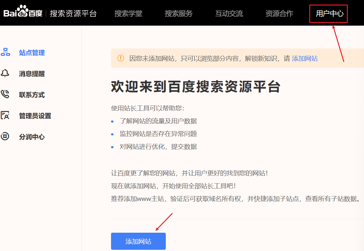了解了站点地图的生成与使用以及API主动推送两种方式后,下面我们就要到对应搜索引擎平台进行相关配置才能正常使用。