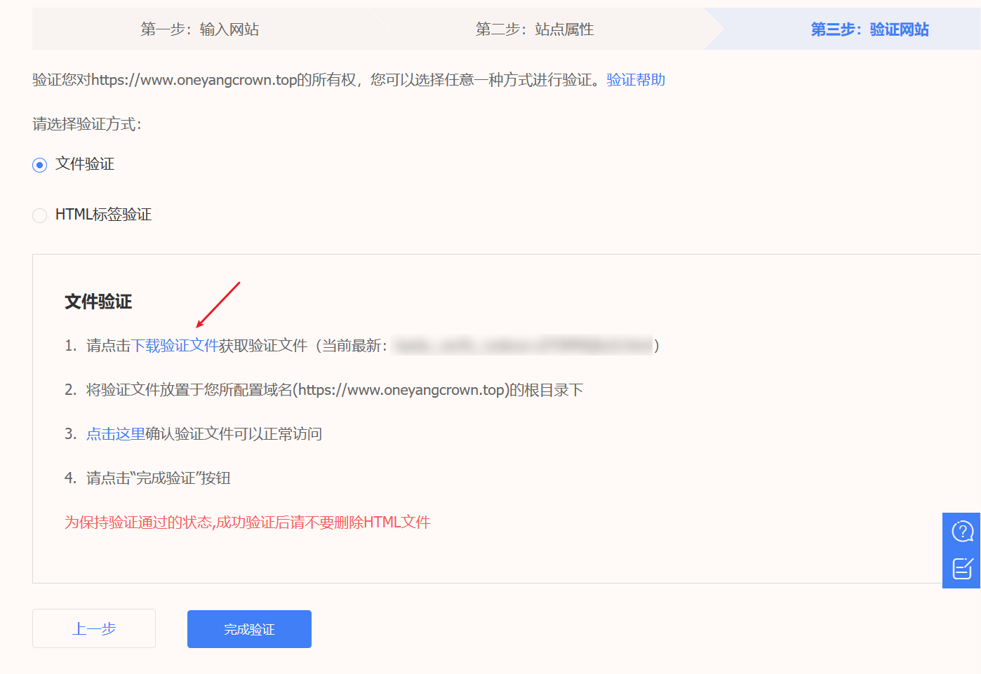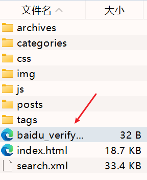 下载百度提供的验证文件,放到MyBlog\source目录下,然后执行一次部署,在网站根目录就可以看到验证文件了