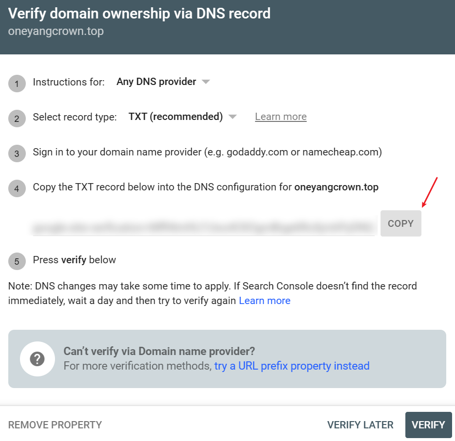 选择Any DNS provider,此验证方法适用于任何DNS提供商: