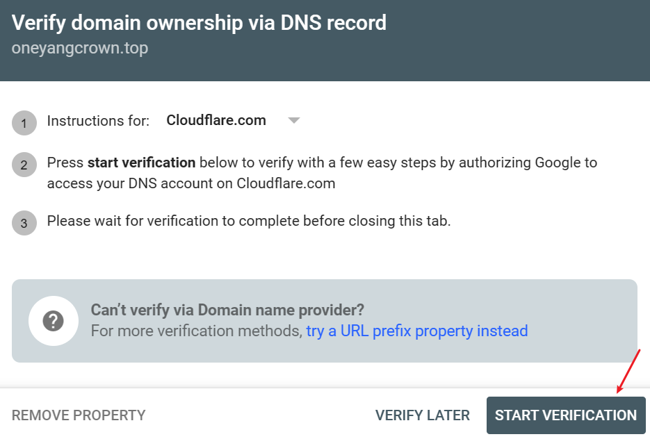 选择Cloudflare.com,点击START VERIFICATION开始验证