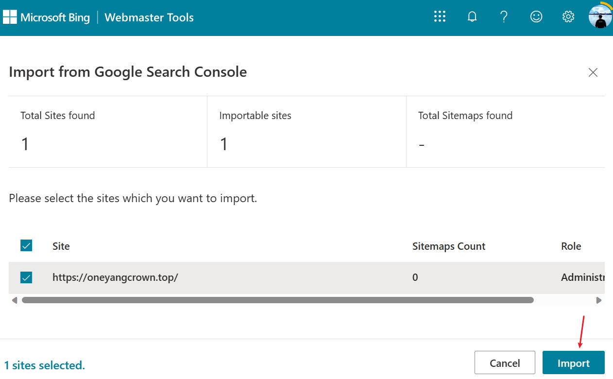 这样就可以直接从谷歌站长平台导入已验证的站点: