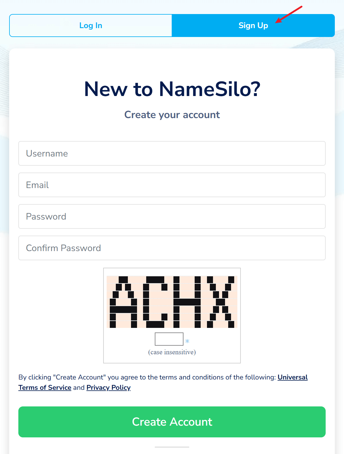 点击Sign Up注册账号,填入自己的账号信息,输入验证码,最后点击Create Account创建账号