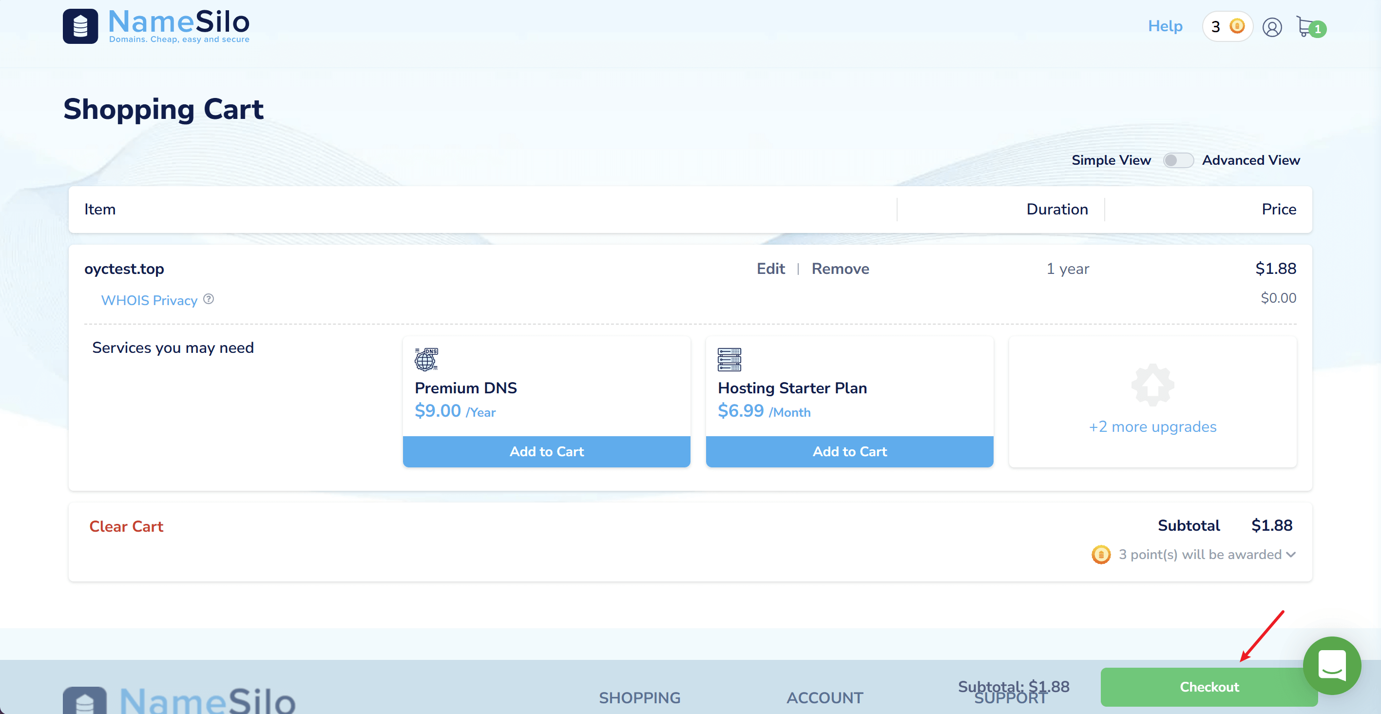 这里可以提示可以选择一些额外的付费服务,有需要可以自行勾选,继续点击Checkout结账