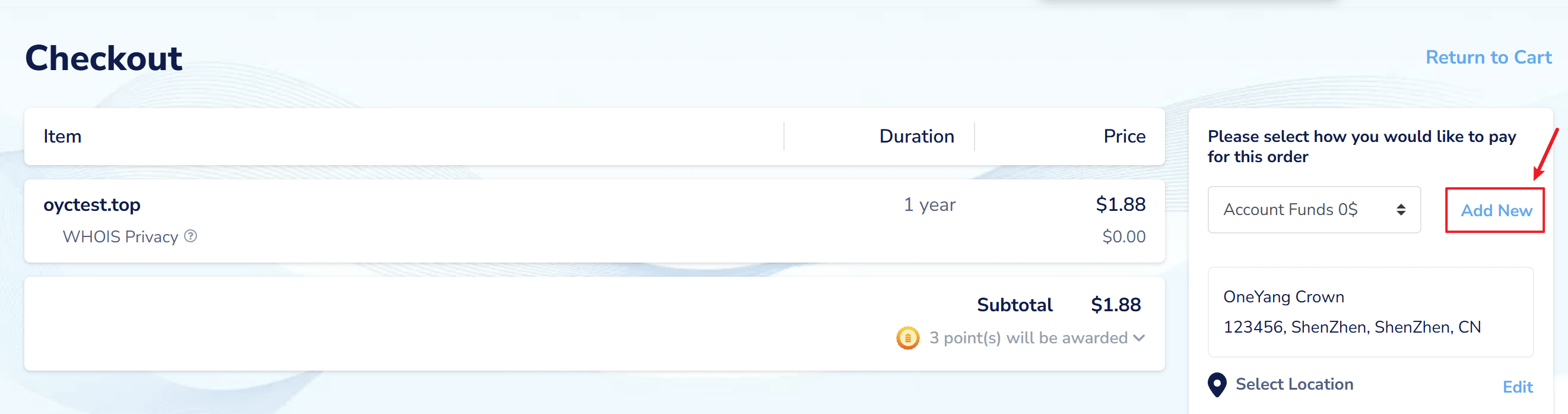 如果没有上面这个弹窗,可以点击这里的Add New选项打开付款方式选项页面