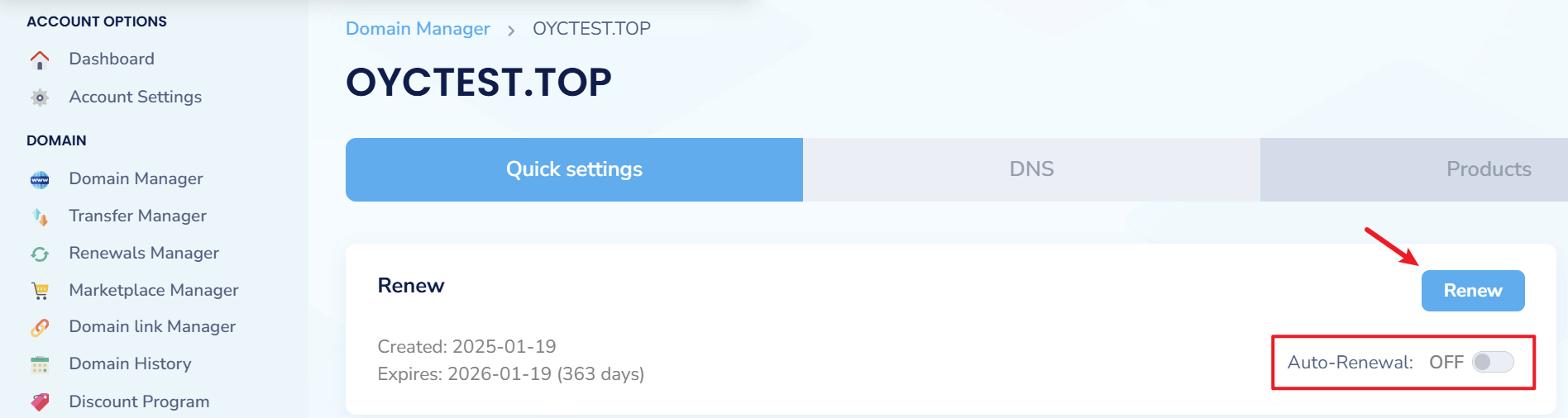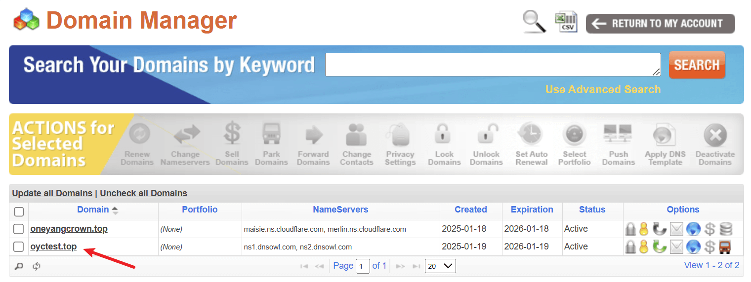 在My Account账号管页面中,点击Domain Manager进入域名管理